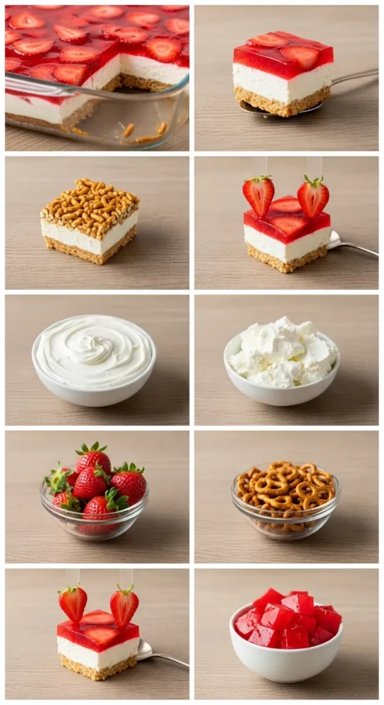 Second, it tastes like chaos in the best way. Salty pretzels. Sweet cream cheese. Fruity strawberry gelatin. It shouldn’t work. And yet? It absolutely does.