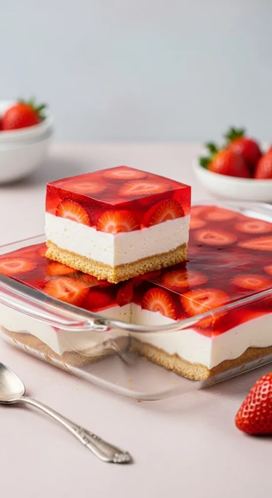 - No gelatin version: You can use strawberry glaze instead, but the texture changes. Still tasty, just less jiggly.