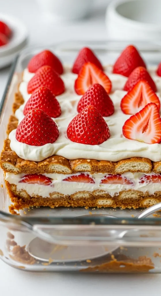 There you have it—a dessert that’s crunchy, creamy, fruity, and basically impossible to mess up. No whipped topping, no stress, just pure tasty magic. So go ahead: slice, serve, and watch people devour it like it’s the last dessert on Earth. And remember, bragging rights are yours because you made it from scratch (sorta). Now go impress someone or yourself. You’ve earned it.