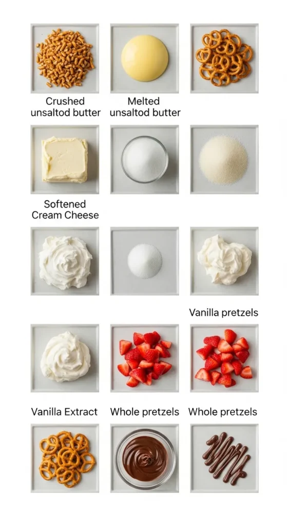 - Crunch meets sweet like a love story. Pretzels on the bottom give you that satisfying snap, while the creamy filling and juicy strawberries hit all the right notes.
